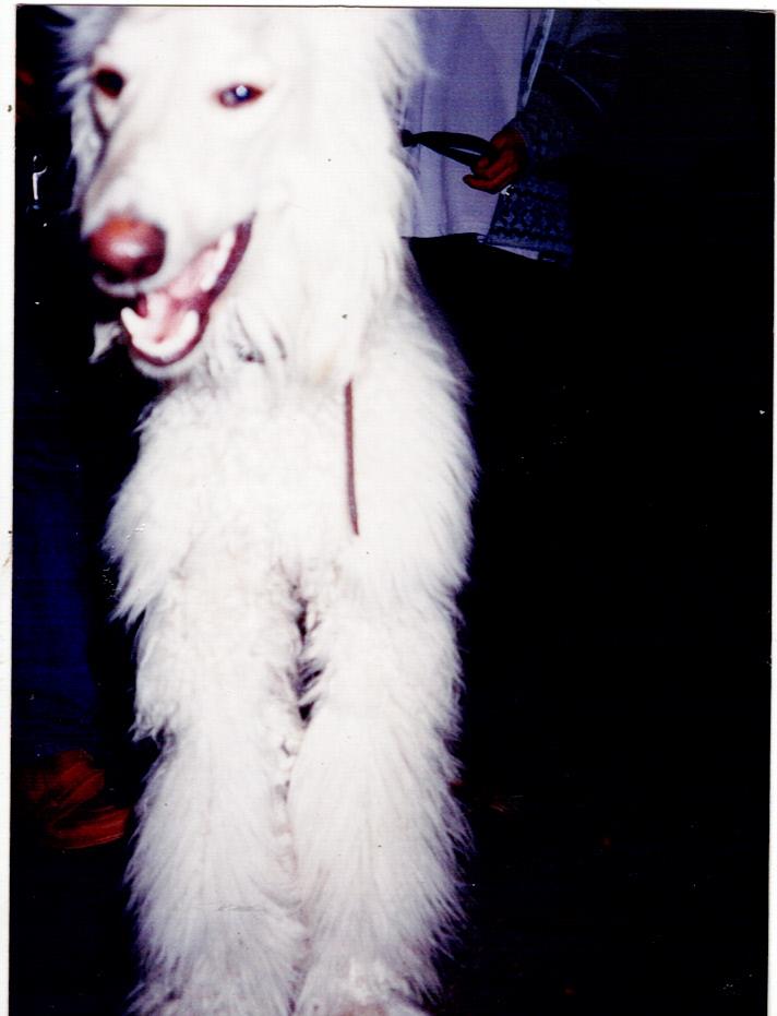 Chart afgański, córka psa mojej babci. Wprowadził się do naszego domu w 1998. Uwielbiała długie spacery, lubiła jeździć pociągiem, szczególnie aby odwiedzić swoją mamę.